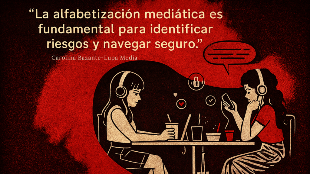 Además, Bazante explicó que la alfabetización mediática es fundamental en un país donde la conectividad supera el 70%, pero en el que al mismo tiempo muchas personas carecen de habilidades para identificar riesgos sobre la desinformación. Esto limita el uso de fuentes confiables y no permite navegar de forma segura. Con esta premisa, la periodista verificadora ecuatoriana trabaja con Lupa Media el programa piloto denominado Liga contra la Desinformación, cuyo objetivo es educar y ser un escape room (juego de escape) de la desinformación. La propuesta está planteada para instituciones educativas en las ciudades de Quito, Guayaquil y Cuenca.